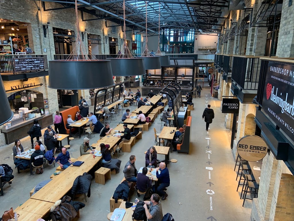Two old warehouses have been converted to bustling markets where most stores and restaurants are local.